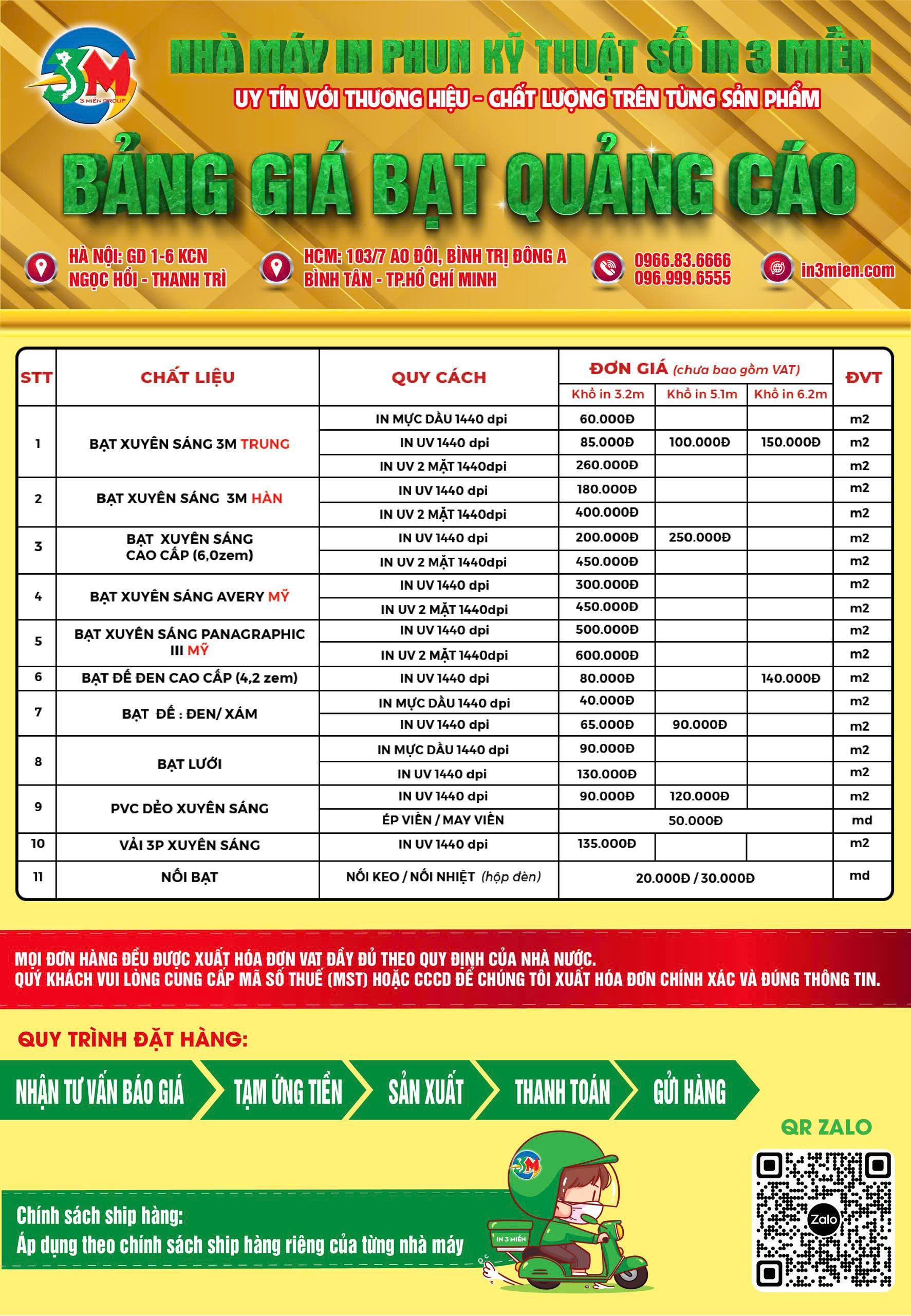 BẢNG BÁO GIÁ IN QUẢNG CÁO CẬP NHẬT MỚI NHẤT TẠI NHÀ MÁY IN 3 MIỀN