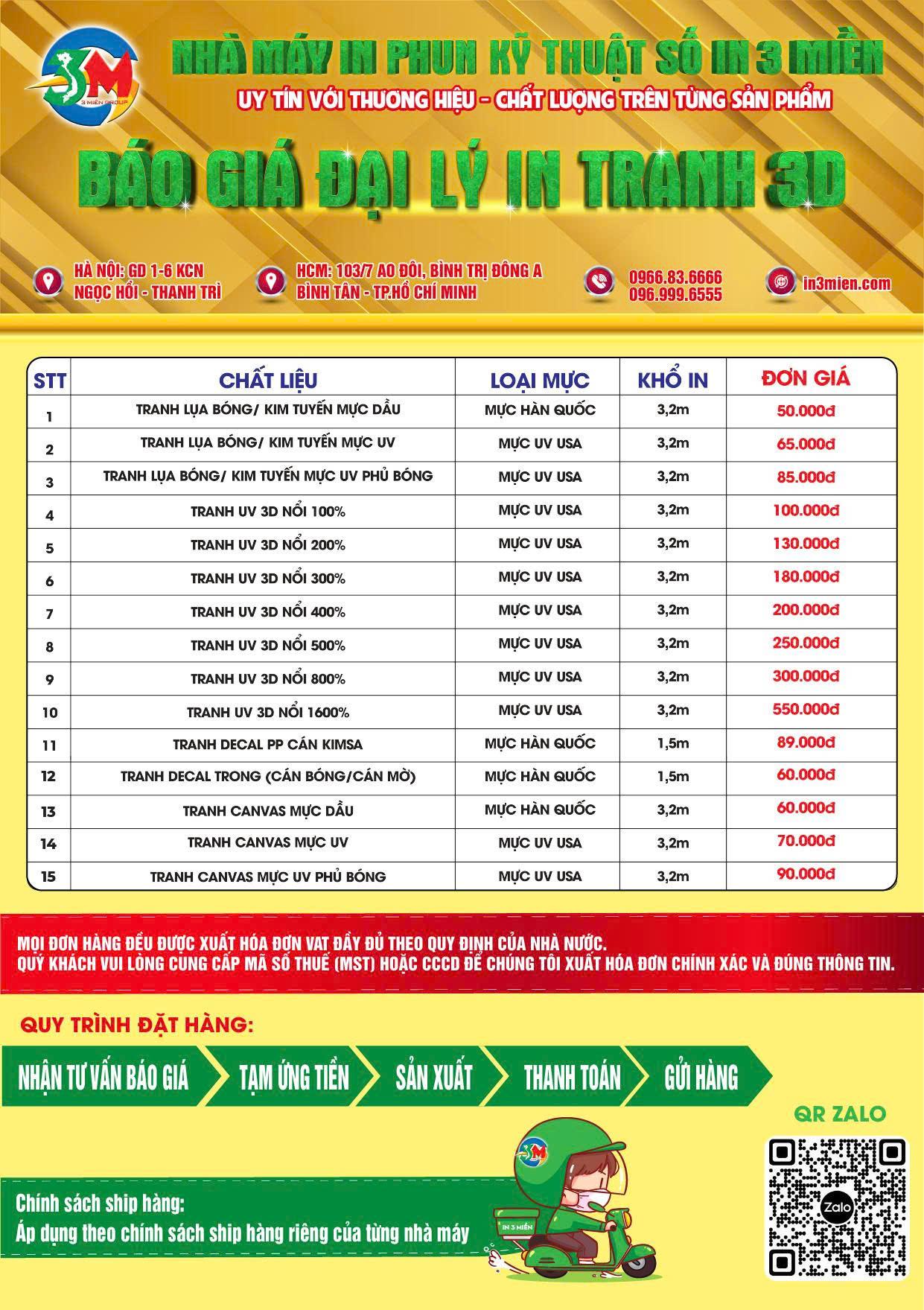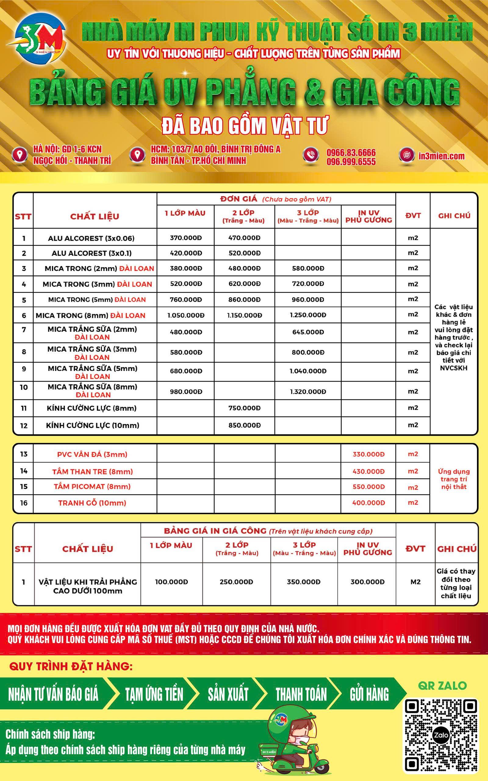 - báo giá in uv In 3 Miền hiện tại đang là mức giá tốt nhất trên thị trường in ấn, chúng tôi trân trọng gửi tới Quý khách hàng giá in tốt nhất